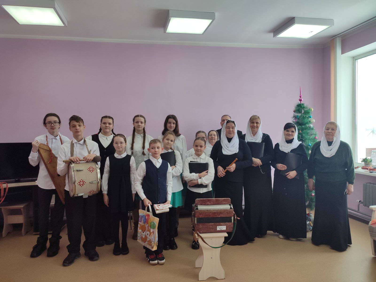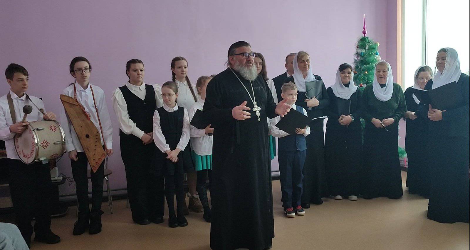 Праздничную атмосферу с песнями, поздравлениями и подарками привезли солисты хора прихода храма Святителя Тихона г. Ганцевичи совместно с детским хором воскресной школы, музыканты ансамбля «Дударыкі», а также волонтёры храма и священники протоиерей Пётр Пилипчук и иерей Кирилл Силантьев.